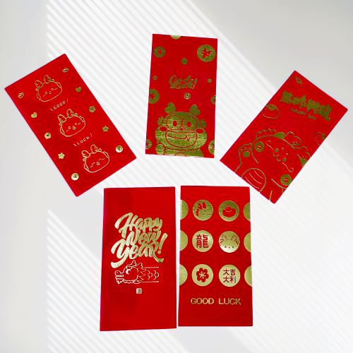 •經典紅色搭金色,紅包袋搭配經典的紅與金色,充滿節慶氛圍,營造熱鬧歡樂氛圍。