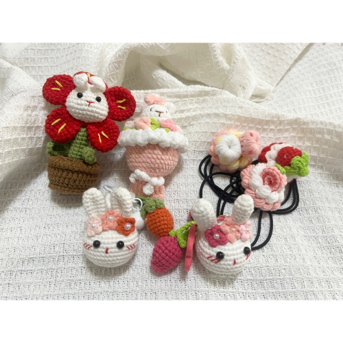 毛線成品專屬賣場 兔子吊飾、兔子盆栽、兔子花束、蛋糕髮繩