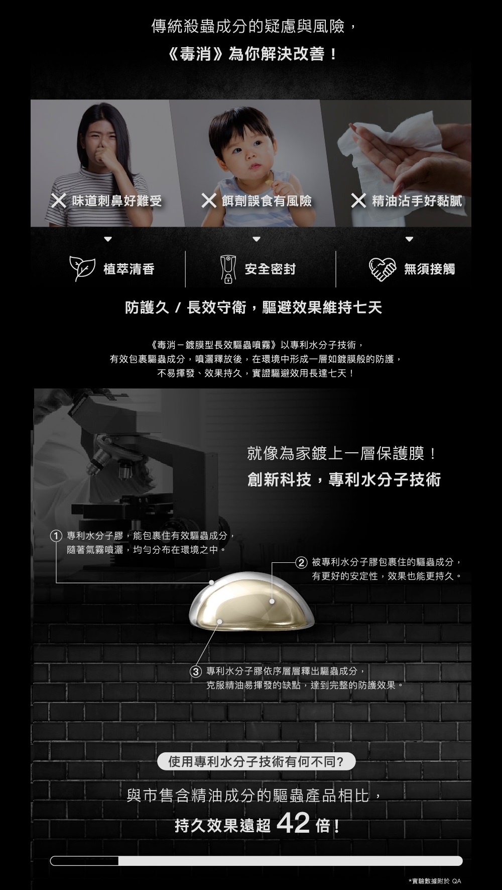 具強效驅蟲植物精油基礎上,結合生技技術添加包覆載體