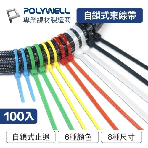 POLYWELL 自鎖式尼龍束線帶10~50公分 100入 工業級 紮線帶 綁線帶 塑膠束帶 寶利威爾 台灣現貨