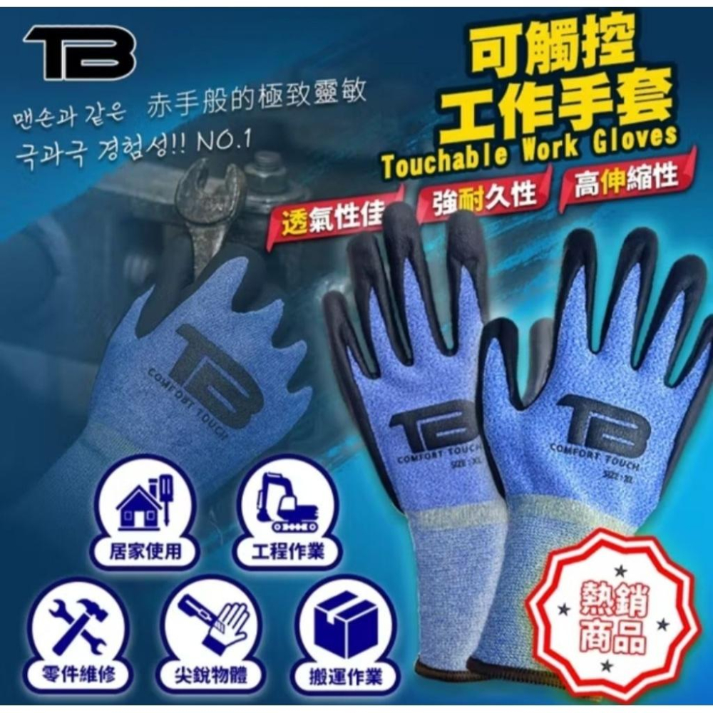 可觸控工作手套 防滑手套 NBR膠合均勻包覆 透氣吸汗 20針U型設計 繡口針織收邊 韓國TB研發