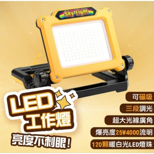 LED工作燈 探照燈 手提 磁吸式 掛勾 25W4000流明 20V/18V 得偉 美沃奇 牧田 電池款