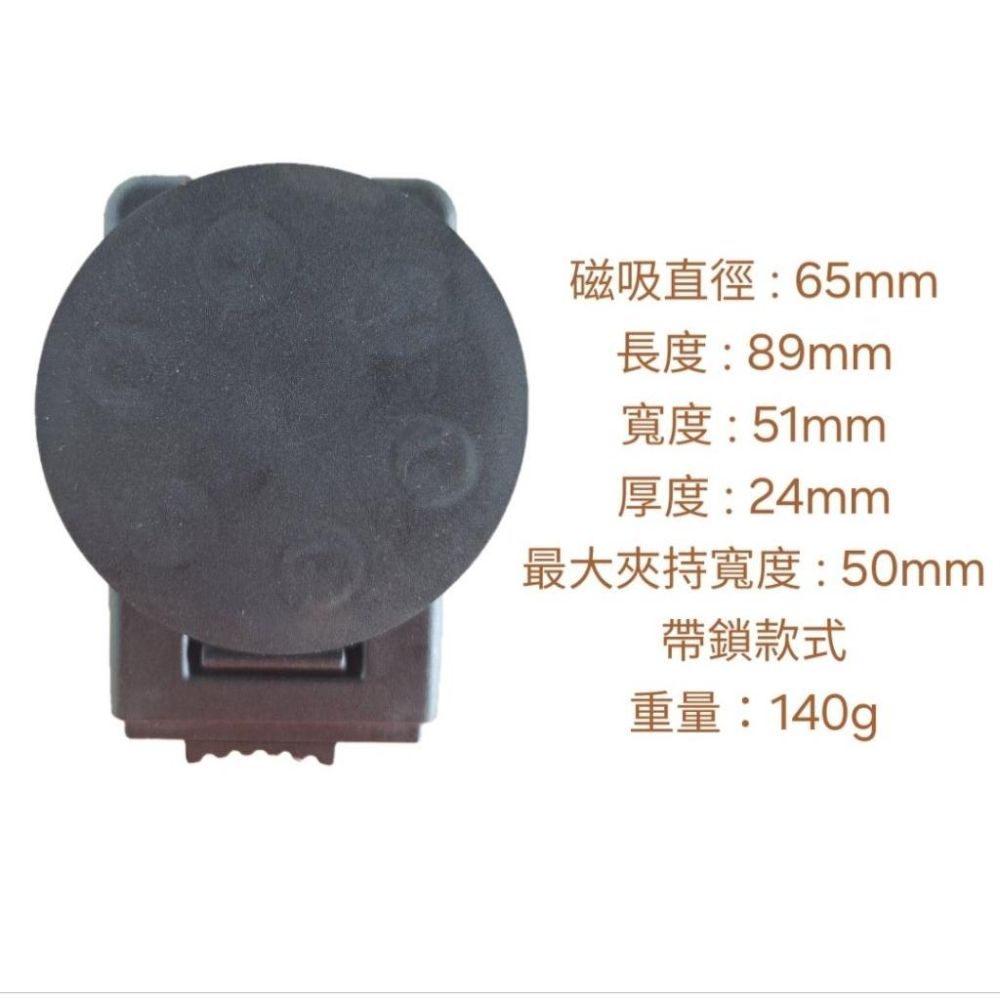 磁吸直徑 : 65mm 長度 : 89mm 寬度 : 51mm 厚度 : 24mm 最大夾持寬度 : 50mm 帶鎖款式 重量:140g 【磁吸工具腰帶掛勾】 一吸就上手,工具跟著走 輕鬆攜帶工具,工作效率更高 -強力磁鐵- 磁性強,輕鬆吸附工具不掉落