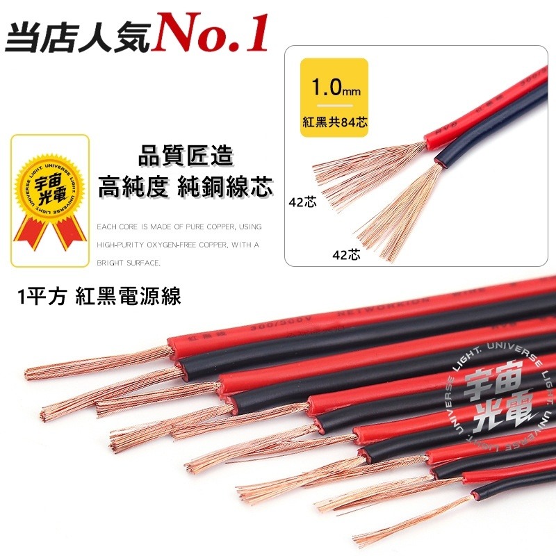 1平方 紅黑電源線 紅黑線 電線 銅線 延長電線 燈條電源線 電源線 延長接線 喇叭線 LED接線 取電器 外接線 電源