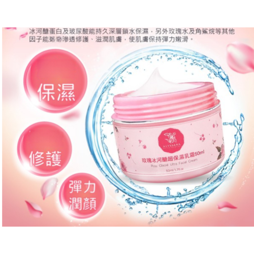 蘊含豐富的冰河醣蛋白及維他命,可減少細紋、皺紋、鎖水保濕。