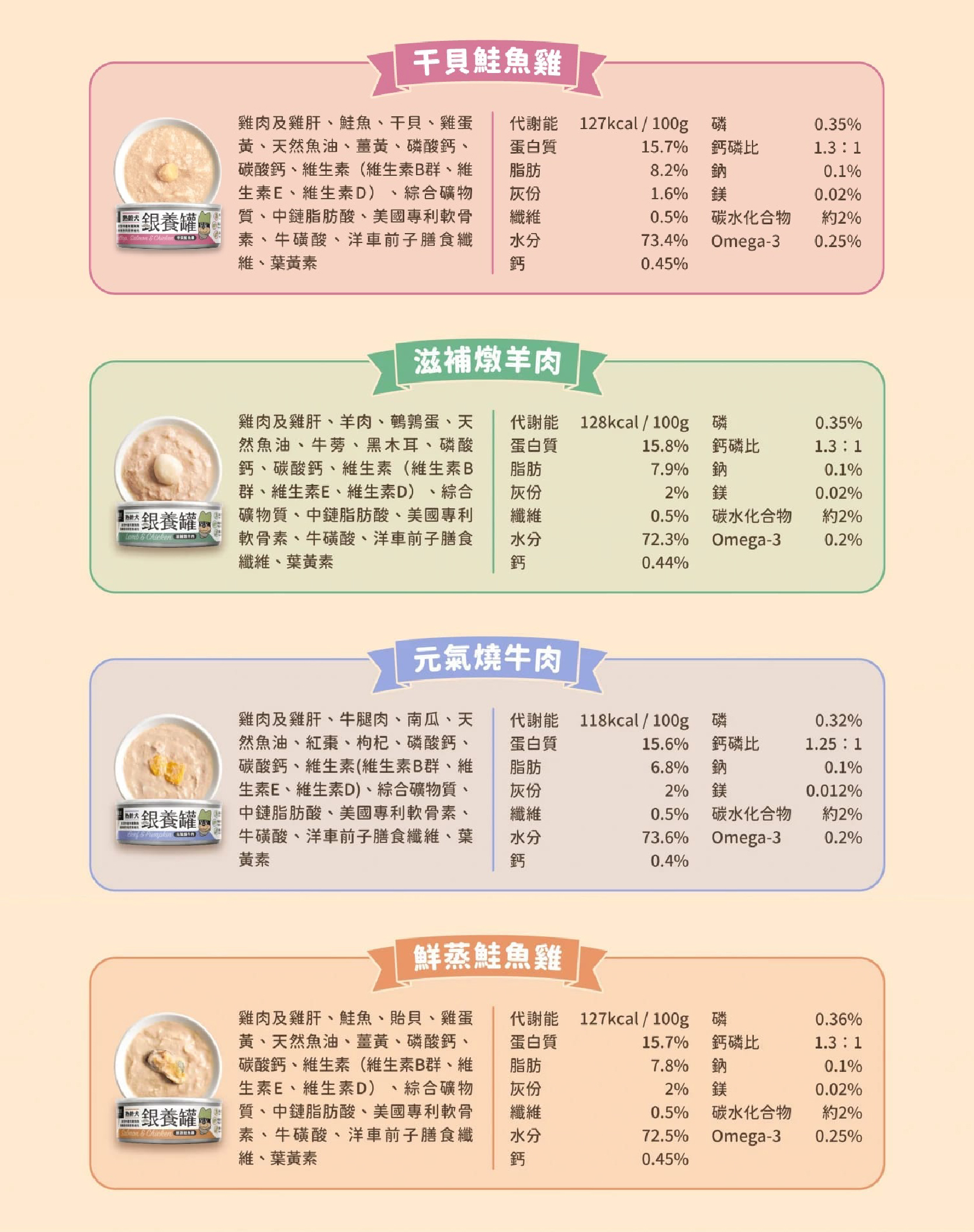 熟齡犬-干貝鮭魚雞(銀養罐)