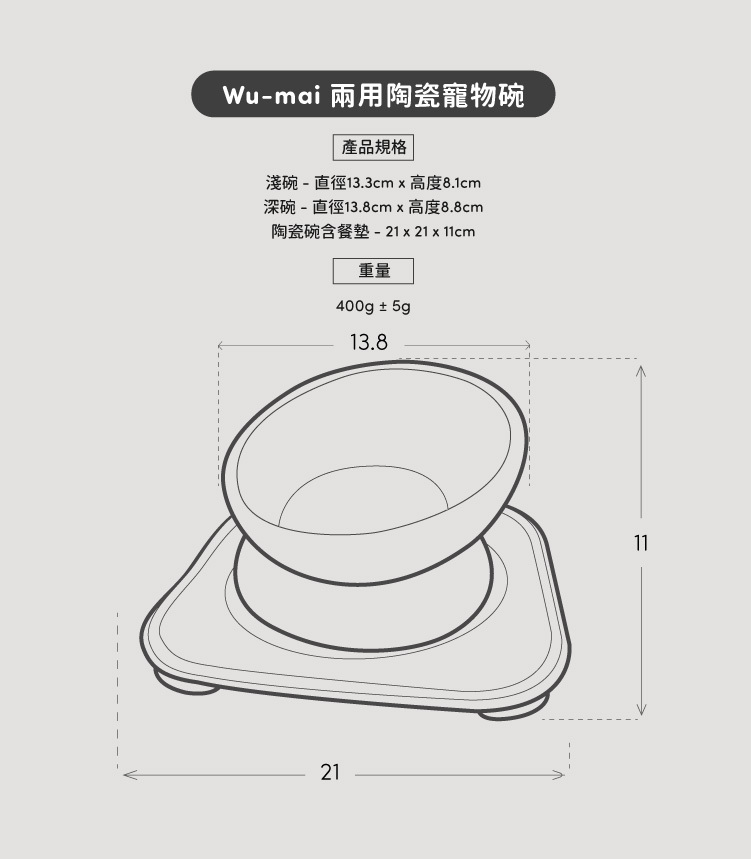 【Wu-mai 兩用陶瓷寵物碗(含防蟻墊)】