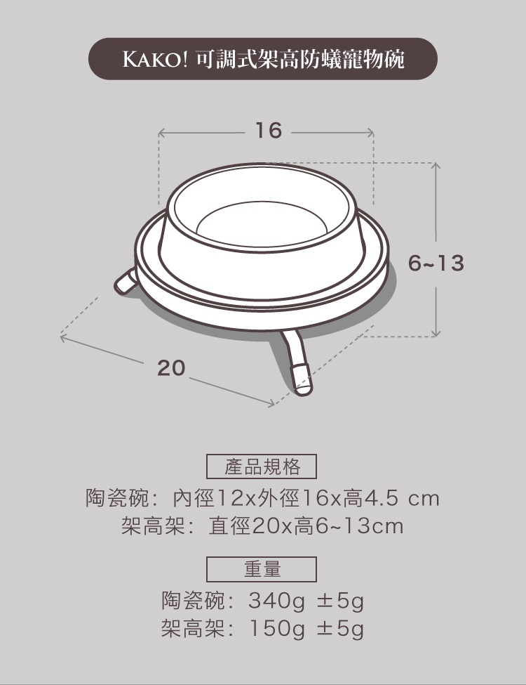 【Koka! 可調式架高防蟻寵物碗】