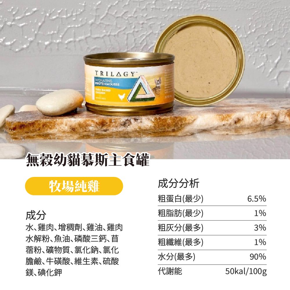 雞骨高湯、牧場雞肉、增稠劑、礦物質與維生素、魚油、魚萃取物、牛磺酸
