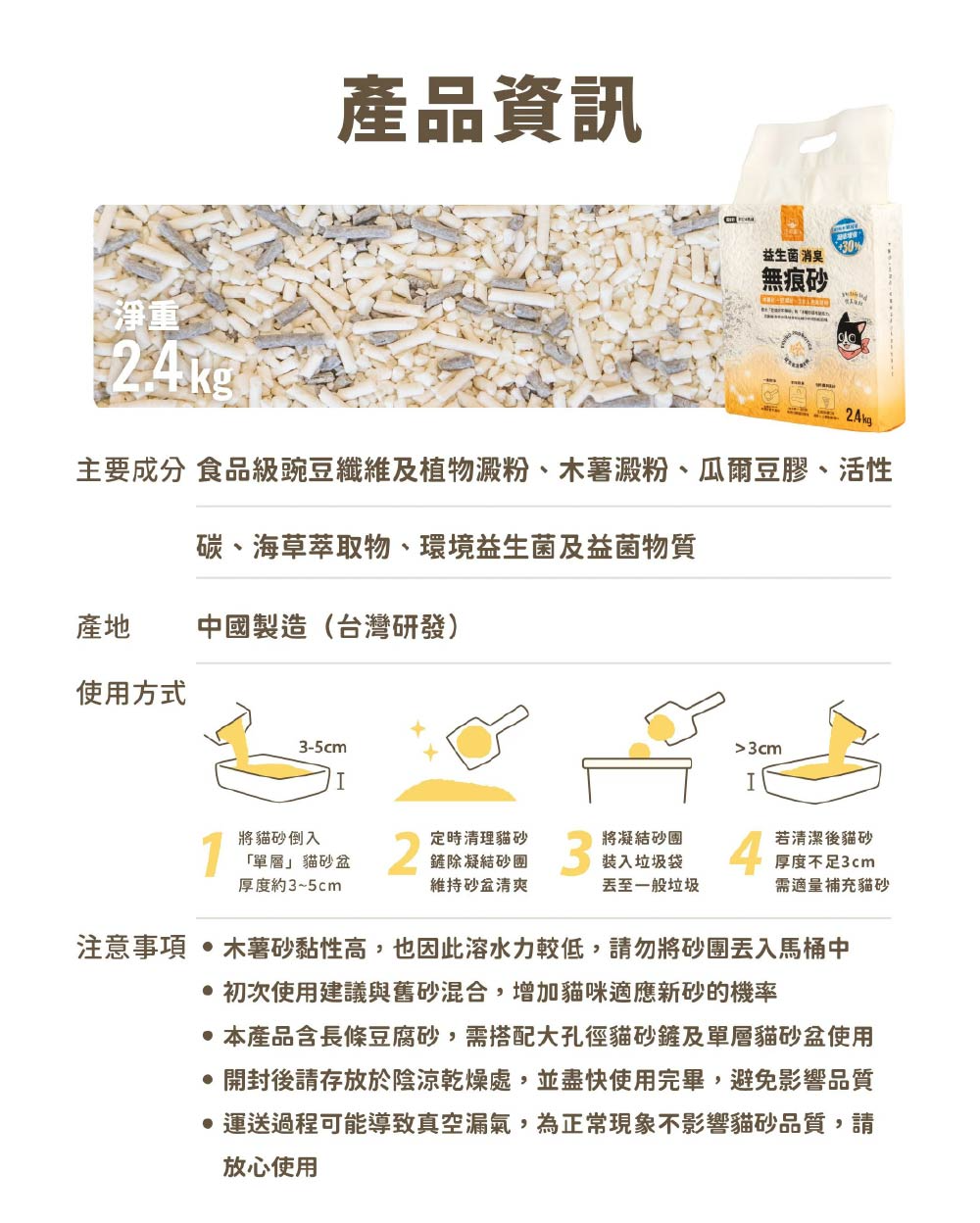 ※運送中可能導致真空漏氣,為正常現象不影響貓砂品質,請放心使用。