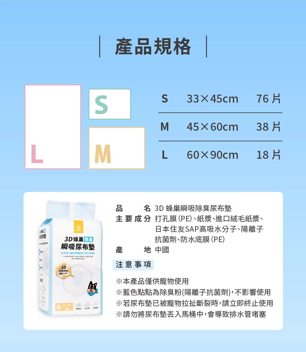 ※藍色點點為除臭粉(陽離子抗菌劑),不影響使用