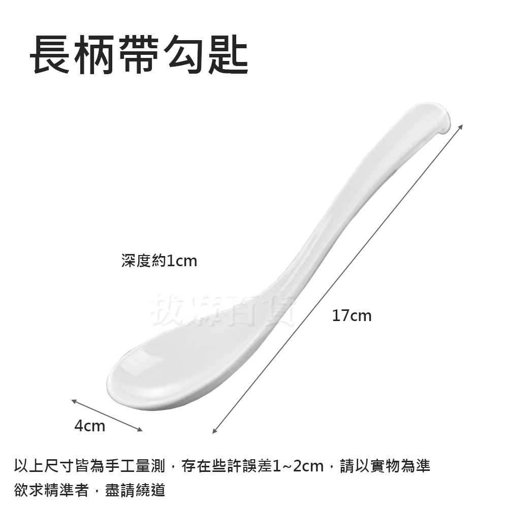 長柄帶勾匙:長約 17 cm,寬約 4 cm,深度約 1 cm