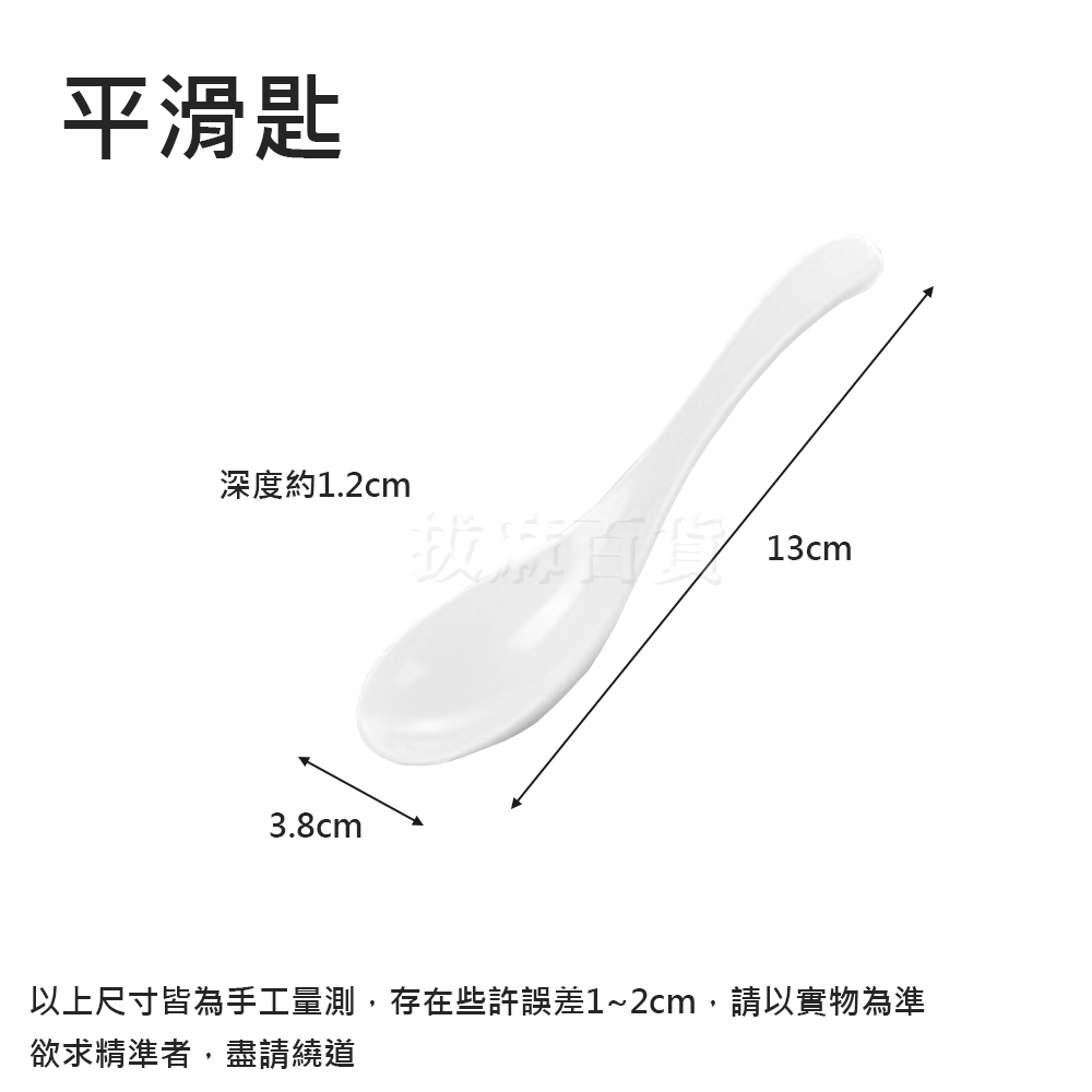 平滑匙:長約 13 cm,寬約 3.8 cm,深度約 1.2 cm