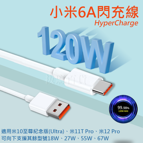 適用小米6A 120W閃充線*1