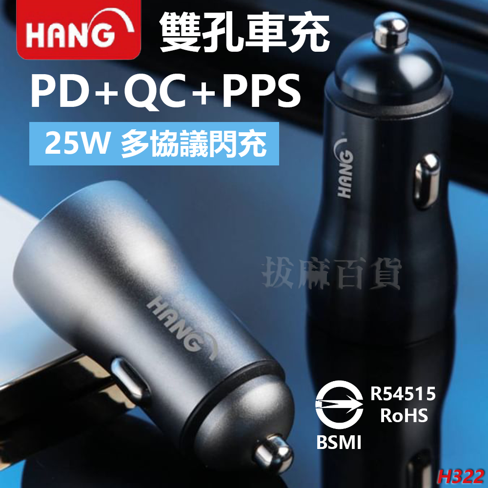 Hang H322金屬調PD+QC 25W車充*1