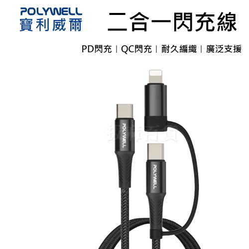寶利威爾 PD 二合一閃充線 (TypeC-TypeC、TypeC-Lightning)*1