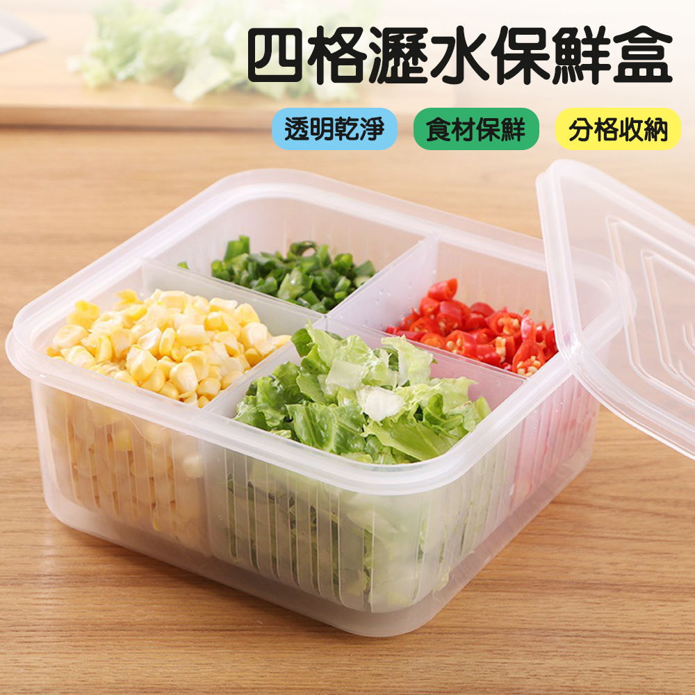 ★內四格小盒分類,並有瀝水功能,蔥花、水果不用怕泡水