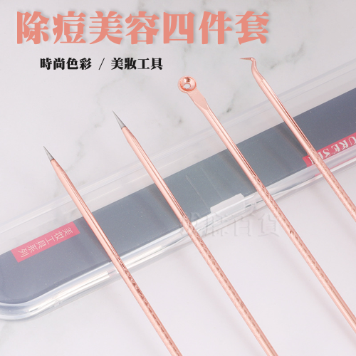 玫瑰金不銹鋼暗瘡針共4支(4種)、暗瘡針收納盒*1