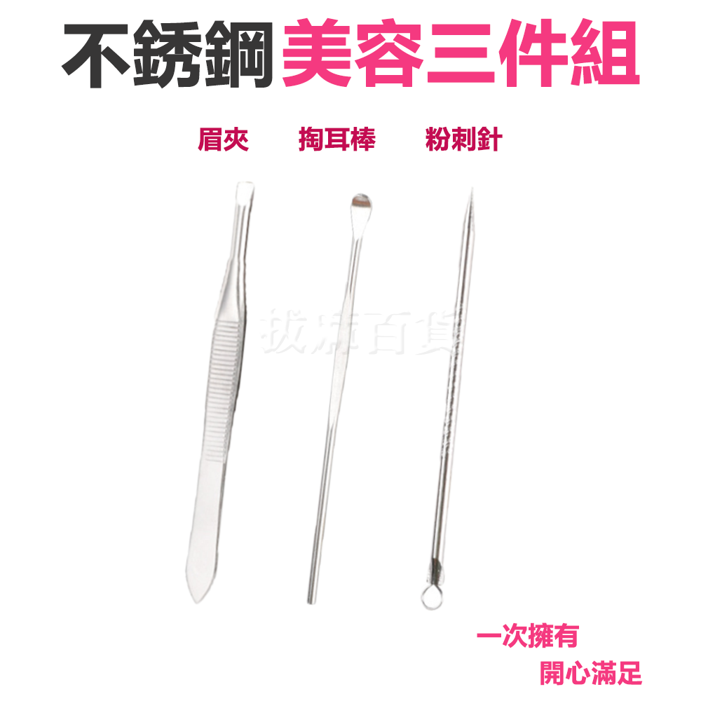 不銹鋼眉夾、掏耳棒與粉刺針三件組 *1組