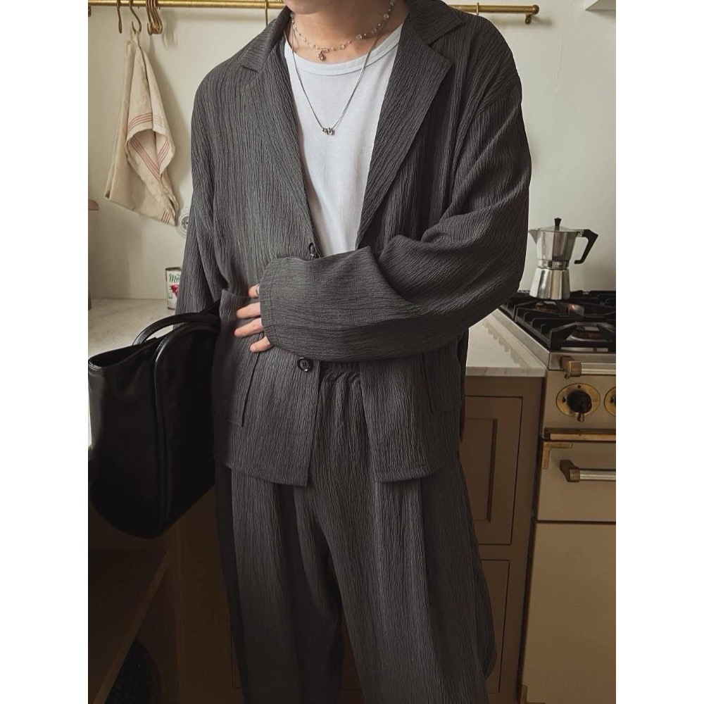 ##套裝 #西裝外套 #長褲 #寬褲 #細皺紋材質