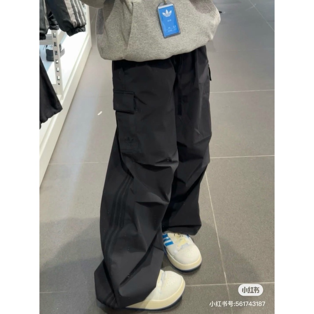 Adidas三葉草 復古十字格子面料工裝褲腿刺繡款長褲 男女同款
