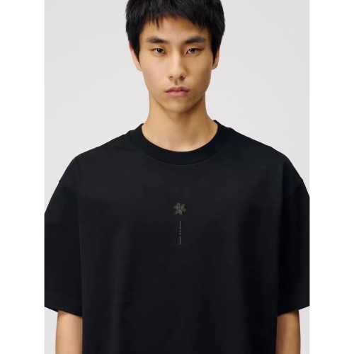 極簡身份標識:胸口微型 Goldwin刺繡logo,啞光繡線勾勒立體輪廓,低調詮釋聯名款身