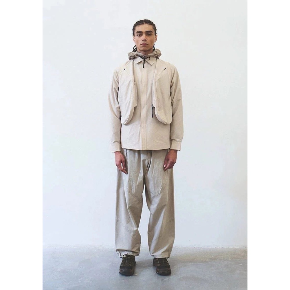 通過多處不對稱裁片拼接,打破傳統褲型邏輯,形成自然流動的立體輪廓,上身隨動作微調線條,低調卻充滿設計細節
