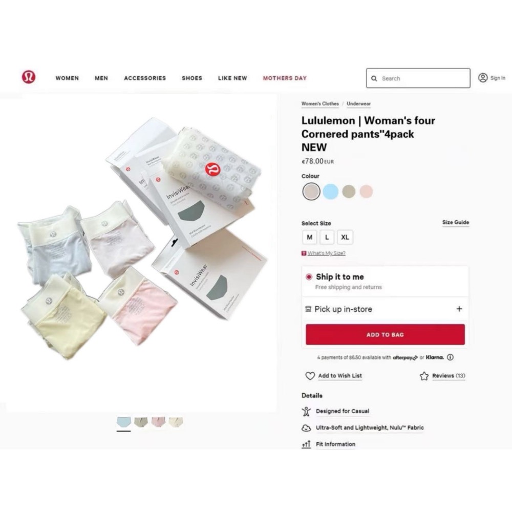 Lululemon 女生內褲 ㄧ盒四入 原價78歐!