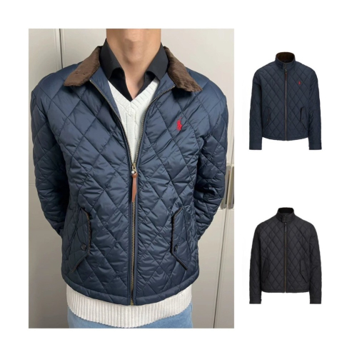 Ralph Lauren 刺繡Logo經典款 燈芯絨拼接 絎縫菱形格 翻領棉服外套 男女同款