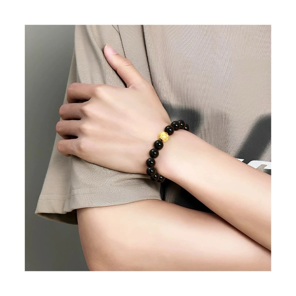 雙十一福利#隨便戴戴轉運珠 黑曜石黃金配色 手串手鍊 男女款
