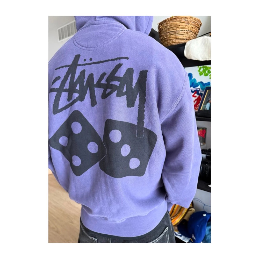 Stussy 骰子印花 水洗做舊日毛圈拉絨 拉鍊連帽衛衣外套 男女同款