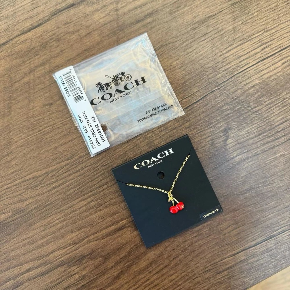 官網售價3680 秒殺coach 基礎百搭櫻桃吊飾 銅項鍊 女款 金色/紅色