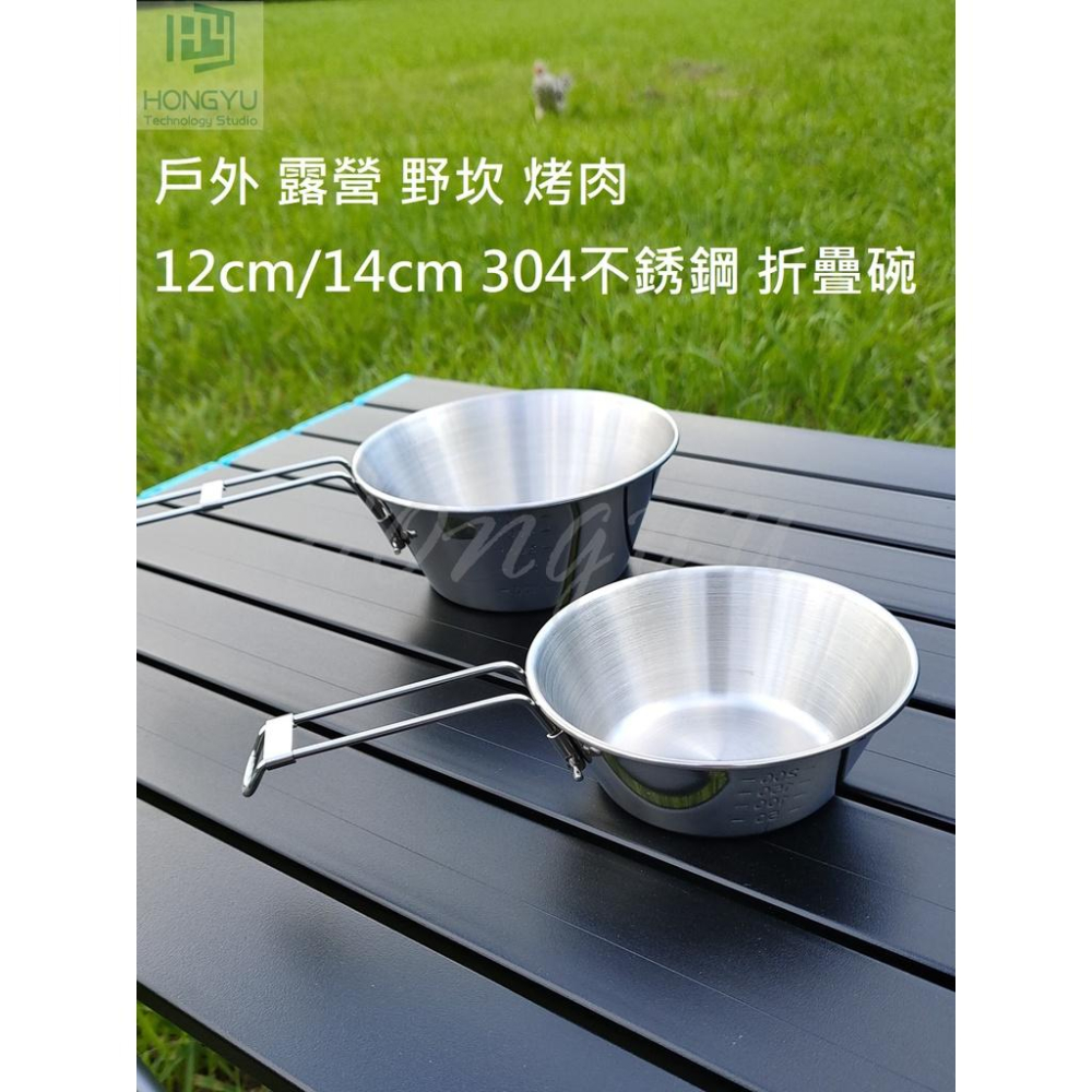台灣現貨 戶外 304不銹鋼 野餐 野坎 露營 烤肉 12cm / 14cm 折疊碗
