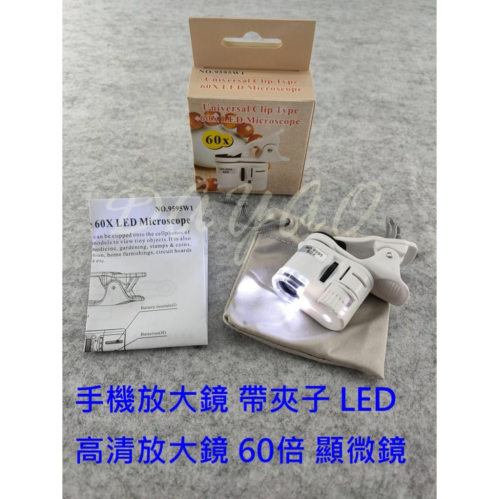 9595W 熱銷款 手機放大鏡 帶夾子 LED 高清放大鏡 60倍 60X 顯微鏡 珠寶鑑定 附電池 現貨