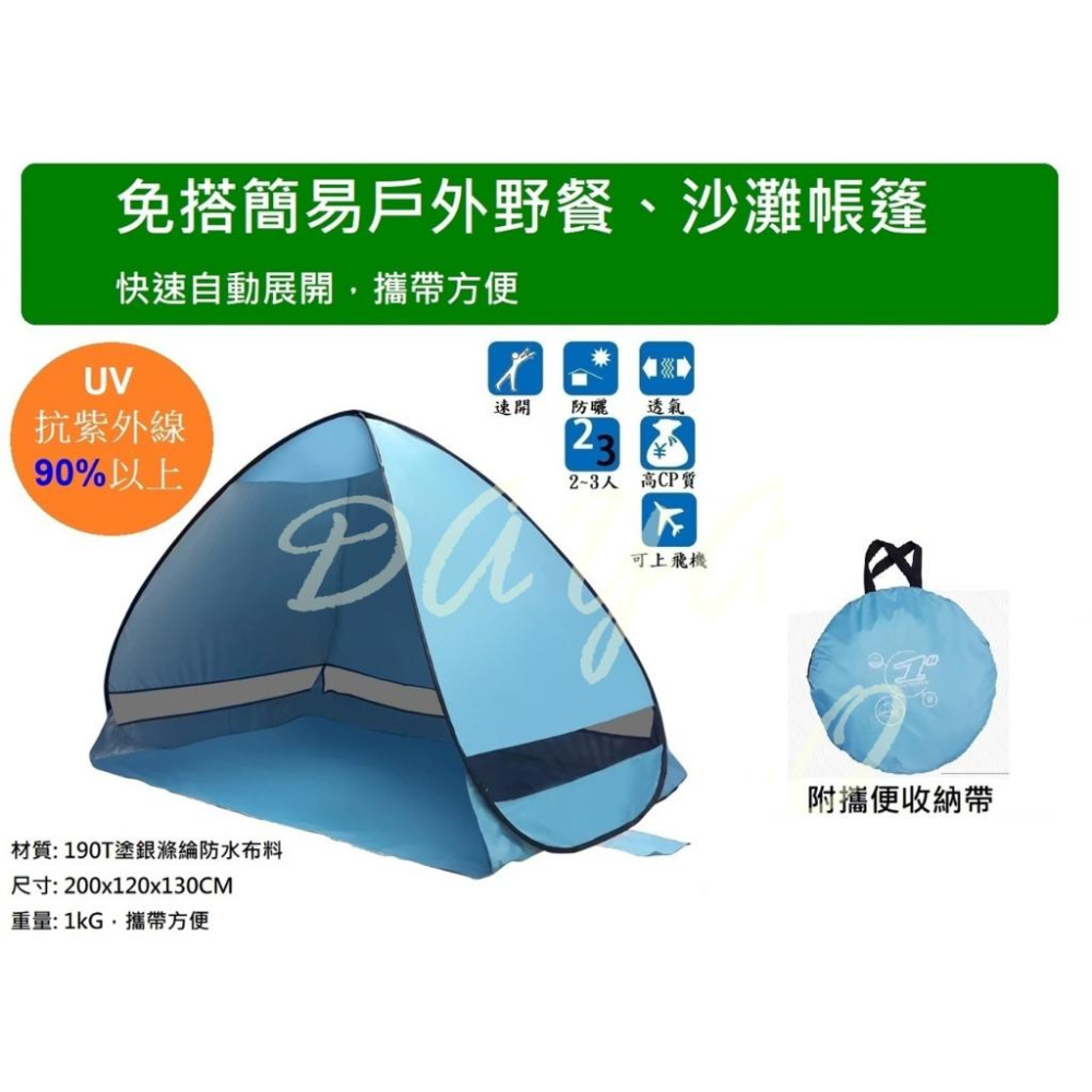 戶外 全自動速開 免搭 沙灘 遮陽 野餐 簡易 帳篷 攜帶方便 附收納帶