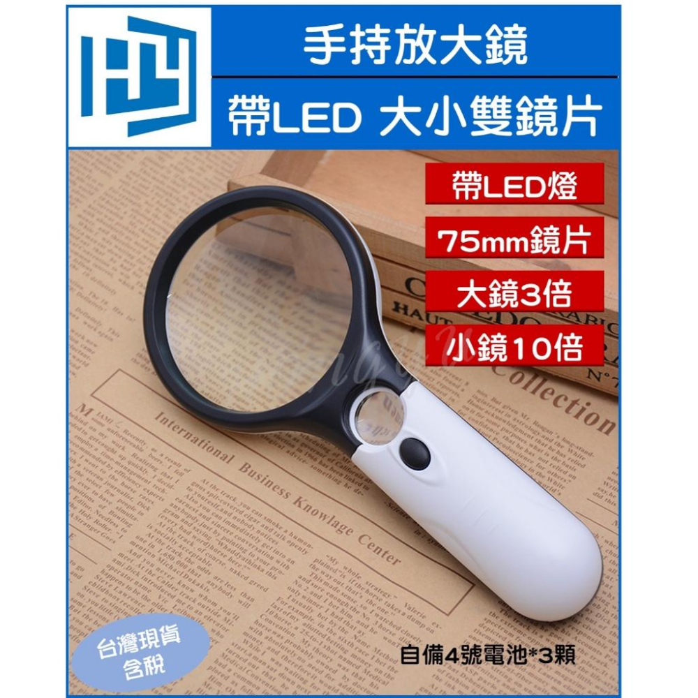 手持放大鏡 75mm鏡片 6902 電路板維修 放大鏡 3倍/10倍 高清 手持放大鏡 帶LED燈