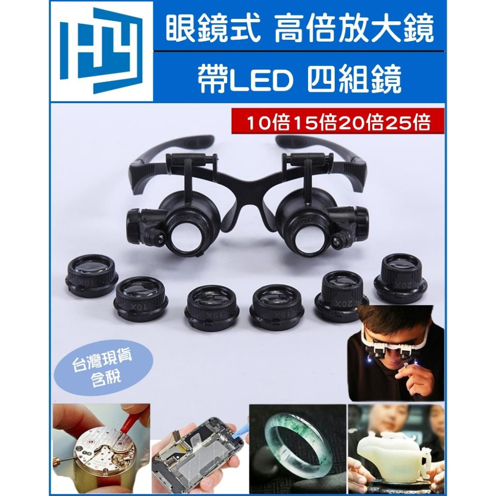 眼鏡放大鏡 9892GJ 電路板維修 放大鏡 10倍15倍20倍25倍 高清 手持放大鏡 帶LED燈