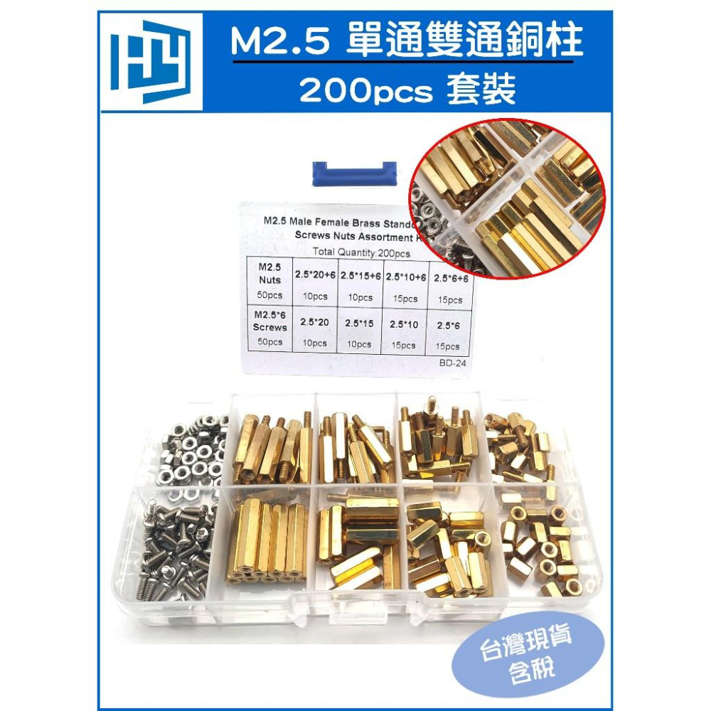 200pcs M2.5 六角 銅柱 單通 雙通隔離柱 PCB 隔離柱 黃銅 200顆 盒裝 套裝