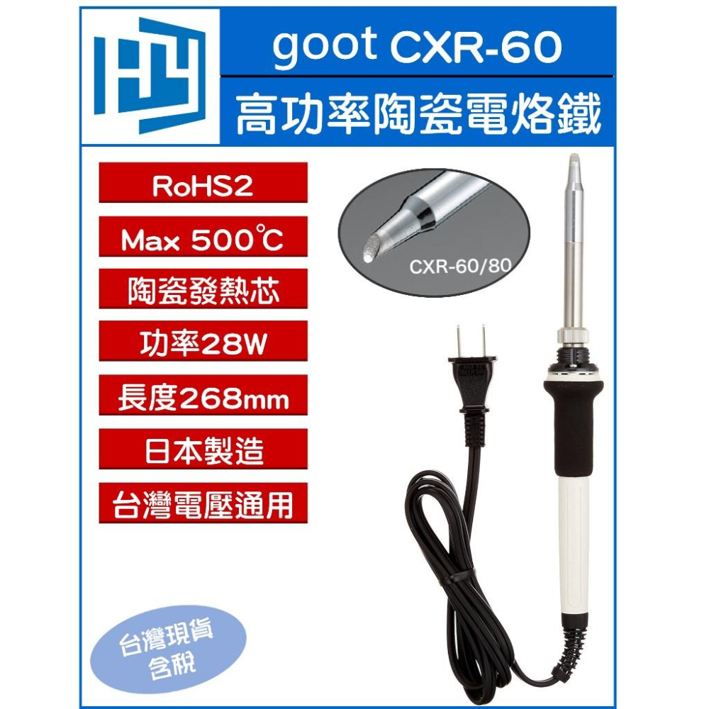日本 GOOT CXR-60 28W 電烙鐵 烙鐵 陶瓷發熱芯 電烙鐵 實驗室 學生實驗 電路板