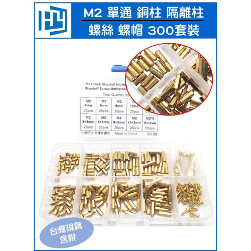 300pcs M2 單通 六角 銅柱 隔離柱 螺帽 螺母 螺絲 組合 300顆 盒裝 套裝