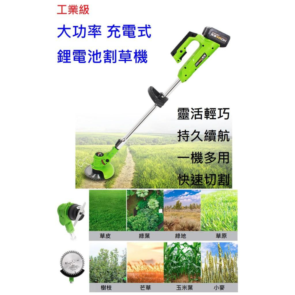 B99-2 充電式 鋰電 多功能 電動割草機 無線 除草機 割草機 居家/工業級 輕便型 割草機 現貨免運 送收納提袋 歐美亞馬遜熱銷款,獨家贈收納提袋 品名: 標準款鋰電池 電動割草機 馬達電壓: 21V 功率瓦數: 650W 空載轉速: 18000轉/分 工作時間: 實際操作時間,非空載時間。 型號24V: 40~60min 左右 (5顆18650電池,容量約7200mAH) 型號36V: 60~90min 左右 (10顆18650電池,容量約14400mAH) 型號48V: 90~120min 左右 (15顆18650電池,容量約21600mAH) 機身長度: 標準款 裸機 92 CM,伸縮桿可加長1~30CM 刀片長度:15CM 機身材質: 鋼、鋁管,AB塑料 產地:中國 保固: 機身3個月,電池1個月。賣場提供報價檢修 注意: 非商品問題情況下,給予評價4星或4星以下(可選擇不評價),工具類商品無提供維修保固,請見諒。