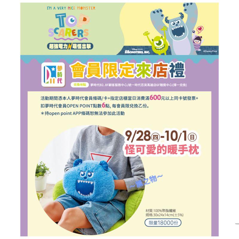 ~薰之物~💯附發票 夢時代 來店禮 怪獸電力公司 暖手枕 毛怪 怪可愛的暖手枕 統一時代百貨 皮克斯 迪士尼 抱枕 靠枕