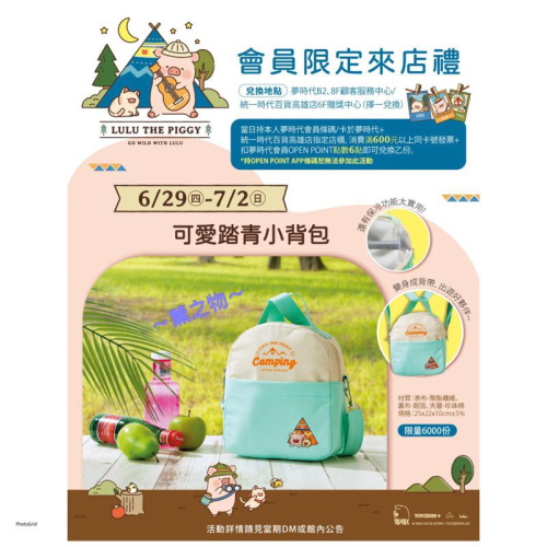 ~薰之物~夢時代 來店禮 LuLu The Piggy 罐頭豬 後背包 小背包 萌萌踏青小背包 背包 保溫袋 保冰袋