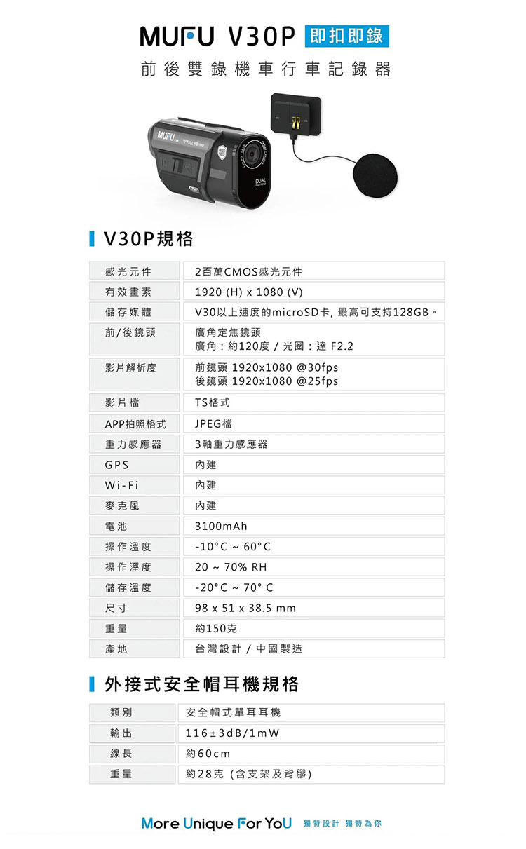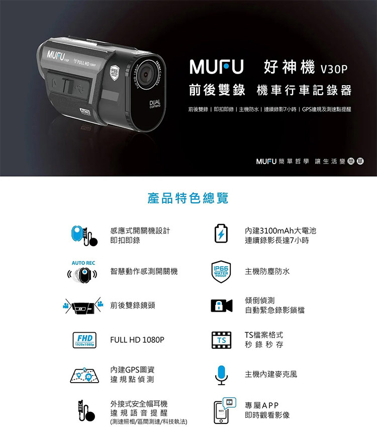 MUFU 前後雙錄機車行車記錄器 V30P好神機