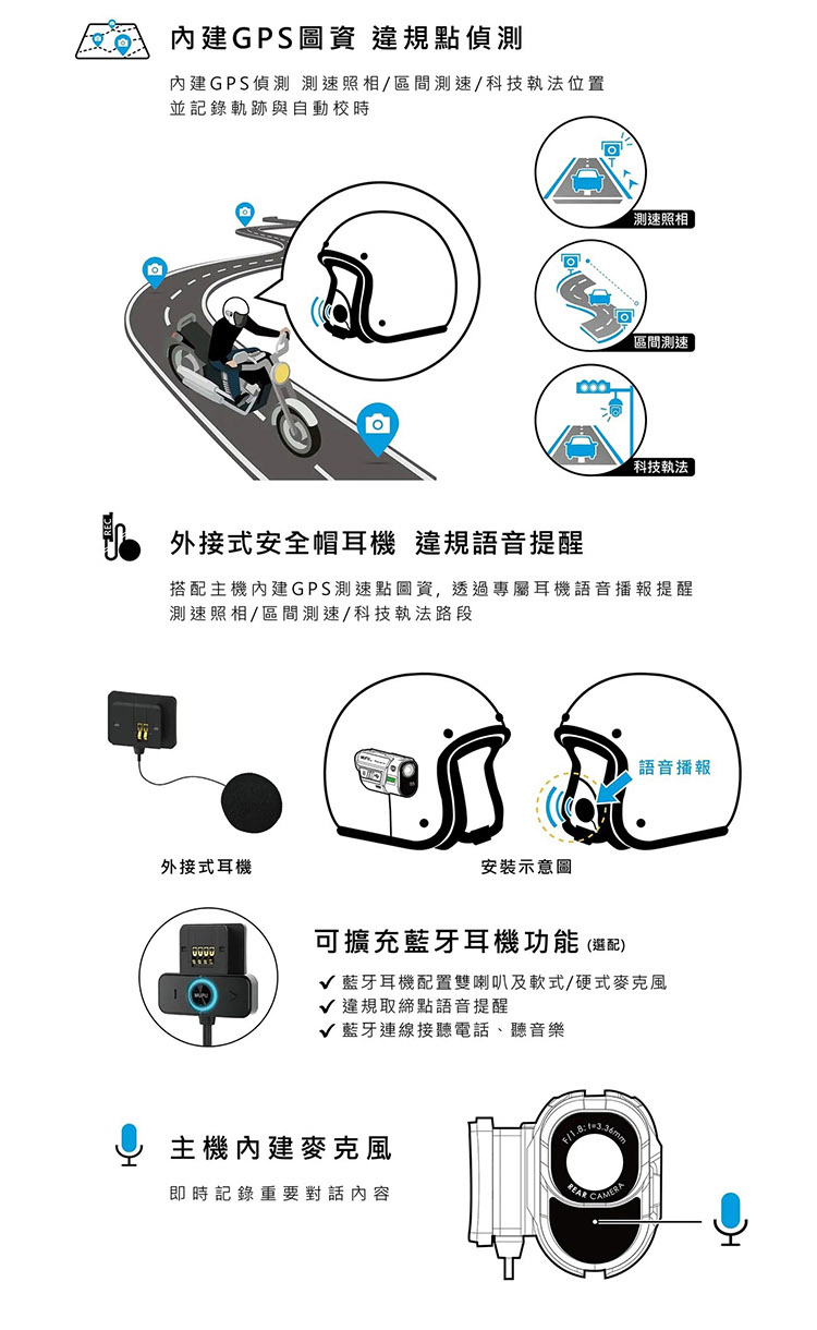 外接式安全帽耳機,取締點提醒(測速照相/區間測速/科技執法)