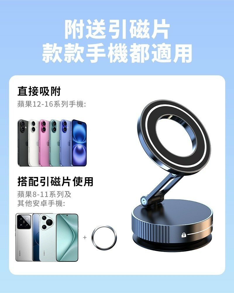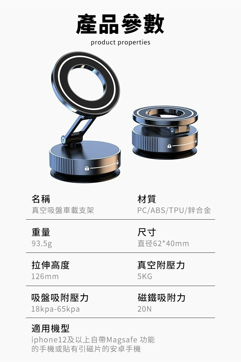 適用機型:iphone12以上自備Magsafe功能的手機或貼有引磁片的安卓手機
