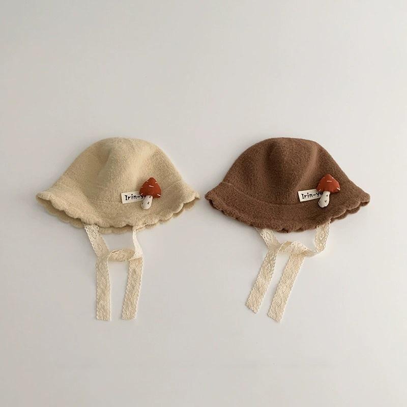 ↖快速出貨↗韓風Ig 韓系女童保暖防風針織毛線帽 蕾絲綁帶 女寶寶 漁夫帽 香菇
