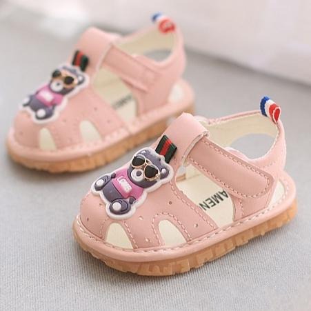 ↖快速出貨↗ 雷朋小熊啾啾學步鞋 包頭涼鞋會叫叫鞋 嬰兒學步鞋 男女寶寶 軟底防滑 逼逼鞋走路會嗶嗶