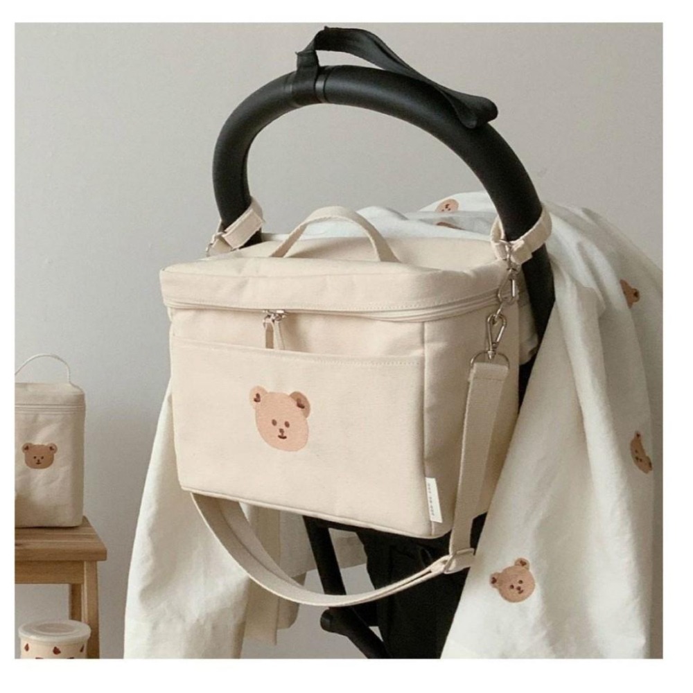 🌊 快速出貨⚡韓國ins兒童小熊保溫包嬰兒寶寶推車收納包 媽咪包便攜外出 母乳保冷包簡約購物袋 遛娃配件置