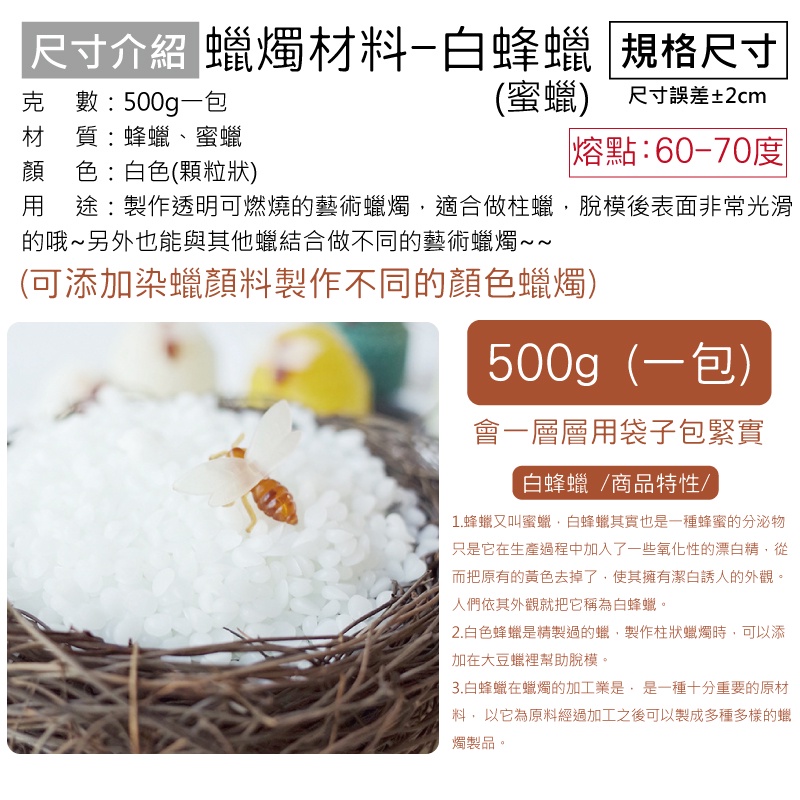 [台灣出貨] 精製合成白蜂蠟 白蜜蠟 蜂蠟 500g 蠟花 蜜臘 精製 蠟脂 - 暖暖好日